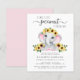 A cute rustic and budget-friendly baby girl shower invitation featuring "A Sweet Little Peanut Is On Her Way" written in a mixture of soft grey modern typography and stylish script, and a pastel pink watercolor of a baby girl elephant adorned in sunflowers. Personalise the mother's name and shower details in simple grey typography.