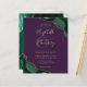 An emerald green watercolor agate design trimmed with faux gold glitter appears in two corners of this elegant design. Personalize it with the couple's names in gold-colored handwriting script over a large purple ampersand. Add the wedding details in gold-colored copperplate and italic fonts on a purple background. The reverse side features a matching green and gold agate design