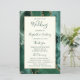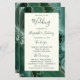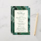 This elegant, modern wedding program features an emerald green agate background trimmed with gold faux glitter. The text appears in elegant emerald green handwriting and copperplate fonts on an ivory rectangle.