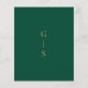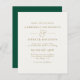 This modern minimalist wedding invitation features a simple elegant design. The front is a cream with a modern gold typography, while the reverse side is a rich emerald green with your initials in a gold typography.