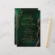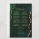 This elegant, modern wedding program features an emerald green agate background trimmed with gold faux glitter. The text appears in gold-colored handwriting and copperplate fonts.