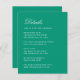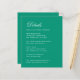 A very simple budget wedding details enclosure card, just white text on emerald green background, a very modern nuance of green. The title "Details" (that can be changed) is written in an elegant calligraphic script.