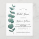 These simple elegant Bridal Shower Invitations are decorated with a single eucalyptus sprig and modern typography.