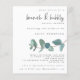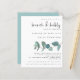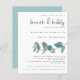 Budget Eucalyptus Brunch Bubbly Bridal Shower Invitation. A budget price SMALLER 4.5” x 5.6” alternative. Available in a SEMI-GLOSS 110 lb CARD STOCK which is the default option (thicker for invitations), OR a SATIN FINISH 80 lb THINNER PAPER STOCK (ideal for enclosures). Envelopes are an optional extra and are slightly larger than the card size. Modern minimalist style with a single branch of teal blue eucalyptus leaves across the page from the left hand side. Brunch & Bubbly is set in a modern handwriting style and is placed above the leaves along with your names, with the other details beneath. Easily personalise the details to your own. A coordinating turquoise blue background is on the reverse. You can change text and background colours to any of your choice to match your wedding colour theme.