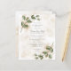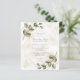 Funeral remembrance memorial invitation featuring a nature, gold and green watercolor leaves design, and a leafy, foliage, botanical celebration of life template that is easy to personalise.