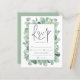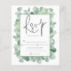 A value for money BUDGET alternative on a smaller size 4.5 x 5.6” semi-gloss 110lbs weight, which is of similar thickness to a postcard (however is not suitable to use as a postcard.). PLEASE NOTE there is ONE invite per sheet. Budget Eucalyptus Frame Wedding RSVP. A stylish set typography in black for the main heading RSVP complementing the rest of the text which you can easily personalise, with a border of lush eucalyptus leaves.