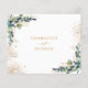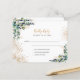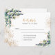 A white background decorated with eucalyptus greenery and golden leaves and faux gold glitter drops. Personalise and add the reply by date and your names.