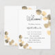 A modern, elegant, wedding program, timeline. White background, decorated with golden eucalyptus, sprigs. Personalise and add your names and wedding details. Black coloured letters. If you have more text it's possible to reduce the line space and also add text on the back.