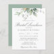 Beautiful bridal luncheon invitation featuring watercolor eucalyptus and gold leaves.