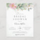 Beautiful bridal shower invitation featuring pink floral watercolor eucalyptus and gold leaves.