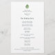 Size 5.5” x 8.5” at a budget price, on an elegant 110 lb LINEN stock – for a luxury feel at great value, this is perfect for programs, as well as invitations and menus etc. This budget size alternative is also available in other paper choices. The SEMI-GLOSS 110 lb card stock is about the same thickness as a postcard, so also works well for invitations. The FELT 100 lbs paper is buff colored, NOT white, so adds a rustic touch. The MATTE 80lbs paper stock is bright white, for crisp printing, great for your menus and programs, whilst the SATIN 80lbs paper is thin and light, ideal for enclosures. PLEASE NOTE THE OPTIONAL ENVELOPES ARE A LITTLE BIGGER IN SIZE AT 6.75” x 9” approx. . This contemporary design has a single eucalyptus leaf motif at the top on the front and slightly smaller on the back. The main header Order of Ceremony is in a black stylish set script and the rest of the text on the front and back can be easily personalised to your own details. You can also change the editable text colors and fonts if you so wish via the further customisation option, as well as the background colors.