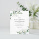 Save money on your wedding stationery with this contemporary watercolor eucalyptus QR code wedding invitation which has space for an itinerary on the back for your wedding celebrations. You can skip the RSVP and insert cards and instead direct your guests to your wedding website via a QR code on the back of the invitation. **PLEASE READ BEFORE PURCHASING** 1. Budget stationery measures 4.5" x 5.6" and fits inside an A6 envelope. You can add white envelopes to your order. 2. Each sheet is one invitation - no cutting is required. 3. The cardstock is bright white with a semi-gloss finish and 110lbs weight which is suitable for invitations. 4. We DO NOT advise you choose the satin paper option as that is a much thinner 80lb paper, which is more like magazine pages than cardstock. 5. If you'd prefer a Classic 5x7 size invitation printed on 120lb cardstock with a matte finish you can transfer this design to a Flat Card using the transfer design options. Flat cards are more expensive but you have a wider choice of sizes and cardstock options and they ship with envelopes. 6. If you make changes and the design is cropped or doesn't look right on the screen please use the Live Design Service to help you fix it. 7. Your order goes directly to the printers. What you see on the screen is what will be printed and shipped to you. Please triple-check for spelling mistakes or incorrect information before you place your order.