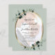 Budget Eucalyptus Photo Website RSVP Gold Sage Wedding Invitation... Our sage eucalyptus photo wedding invitation features a gold metallic oval frame embellished with emerald-hued eucalyptus leaves bordering a photo of the bride and groom over a light sage green background. Your photo will be placed on a layer underneath a white transparency to "fade" the colours somewhat so the text on top is readable. The front of the invitation also includes the wedding website where your invitees can RSVP and view all of the details normally sent in a wedding packet. This modern style wedding invitation was designed to be both elegant and budget conscious... not to mention time-saving. All example text can be easily revised with your own information on the personalisation template.