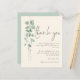 A value for money BUDGET alternative on a smaller size 4.5 x 5.6” semi-gloss 110lbs weight, which is of similar thickness to a postcard (however is not suitable to use as a postcard.). PLEASE NOTE there is ONE invite per sheet. Budget Eucalyptus Sage Ivory Thank You. Modern botanical style with watercolor sage foliage flowing down on the left hand side and text to the right. A set handwritten style script for Thank You and the rest of the text you can easily personalise on a background of ivory. A sage green background is on the back.