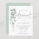 A value for money BUDGET alternative on a smaller size 4.5 x 5.6” semi-gloss 110lbs weight, which is of similar thickness to a postcard (however is not suitable to use as a postcard.). PLEASE NOTE there is ONE invite per sheet. Budget Eucalyptus Script Retirement Invitation. Minimalist botanical style, with watercolor greenery flowing down on the left hand side and text to the right. A set handwritten script for Retirement and the rest of the text you can easily personalise.