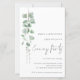 Budget Eucalyptus Wedding Evening Party. A LARGER size 5.5” x 8.5” at a budget price, PLEASE NOTE THE OPTIONAL ENVELOPES ARE A LITTLE BIGGER IN SIZE AT 6.75” x 9” approx. Minimalist botanical style to invite your evening wedding guests. A set handwritten script for Evening Party and the rest of the text you can easily personalise. An elegant branch of watercolor eucalyptus leaves runs down the left hand side.