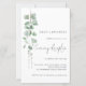 Budget Eucalyptus Wedding Evening Reception. A LARGER size 5.5” x 8.5” at a budget price, on a SEMI GLOSS 110 lb CARD STOCK, great for invitations, at roughly the same thickness as a postcard, or an elegant 110 lb LINEN stock – for a luxury, slightly thinner feel at great value. PLEASE NOTE THE OPTIONAL ENVELOPES ARE A LITTLE BIGGER IN SIZE AT 6.75” x 9” approx. This budget size alternative is also available in other paper choices. The FELT 100 lbs paper is buff coloured, NOT white, so adds a rustic touch. The MATTE 80lbs paper stock is bright white, for crisp printing, great for your menus and programs, whilst the SATIN 80lbs paper is thin and light, ideal for enclosures. PLEASE NOTE THE OPTIONAL ENVELOPES ARE A LITTLE BIGGER IN SIZE AT 6.75” x 9” approx. Minimalist botanical style to invite your evening wedding guests. A set handwritten script for Evening Party and the rest of the text you can easily personalise. An elegant branch of watercolor eucalyptus leaves runs down the left hand side.