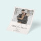 Announce your special day without stretching your budget with our inexpensive wedding save the date card! Featuring your chosen photo on the front, this card beautifully captures your joy and excitement. Below the image, 'Save the Date' elegantly combines serif font with fancy delicate script, providing a stylish announcement. Your names and the date are prominently displayed, ensuring your guests mark their calendars. On the back, include another photo and more details about your upcoming wedding. Perfect for couples who want a touch of elegance at an affordable price!