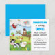 A budget price SMALLER 4.5” x 5.6” alternative. Available in a SEMI-GLOSS 110 lb CARD STOCK which is the default option (thicker for invitations), OR a SATIN FINISH 80 lb THINNER PAPER STOCK (ideal for enclosures). Envelopes are an optional extra and are slightly larger than the card size. Here’s a colourful farm yard scene with cute animals to invite your guests to your little boy’s first birthday celebration. Easily customise the text on front and back.