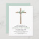 Budget Sage Green Girl's Eucalyptus and Cross Botanical Greenery Watercolor Religious First (1st) Holy Communion Invitations.