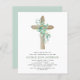 Budget Sage Green Boy's Eucalyptus and Cross Botanical Greenery Watercolor Religious First (1st) Holy Communion Invitations.