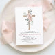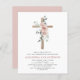 Budget Daughter's Dusty Rose Pink Floral and Eucalyptus - Cross Botanical Sage Green Greenery Watercolor Religious First (1st) Holy Communion Invitations.
