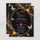 Floral Black Gold Tiara Butterfly Mis Quinceañera Invitation