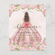 Floral Blush Pink Princess Gown Dress Gold Glitter Sparkle 15th Birthday Quinceanera Invitation