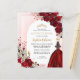 Floral Burgundy Maroon Red Gold Princess Gown Dress Glitter Sparkle Tiara Crown Butterfly 15th Birthday Quinceanera Invitation