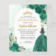 Floral Emerald Green Princess Gown Dress Glitter Sparkle Tiara Crown Butterfly 15th Birthday Quinceanera Invitation