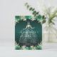 Floral Emerald Green Princess Gown Dress Glitter Sparkle 15th Birthday Photo Quinceanera Invitation