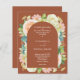 Terracotta all-in-one wedding invitations feature your details on the front in chic lettering with beautiful watercolor flowers - white and green hydrangeas, pink and cream roses, daisies, small stems, and leaves - and a QR Code to your wedding website on the back. Printed on affordable, budget 4.5" x 5.6" 110 lb. paper. **WHITE ENVELOPES are an additional cost. The Live Design Service can help you with the layout of your design or colours if needed. MATCHING items in our store.