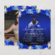 Floral Royal Blue Princess Gown Dress Glitter Sparkle 15th Birthday Photo Quinceanera Invitation