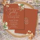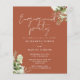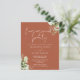 This elegant budget terracotta botanical greenery floral engagement party invitation can be personalised with your information in chic typography with your monogram initials on the reverse. Designed by Thisisnotme©