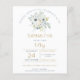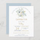 A budget price SMALLER 4.5” x 5.6” alternative. Available in a SEMI-GLOSS 110 lb CARD STOCK which is the default option (thicker for invitations), OR a SATIN FINISH 80 lb THINNER PAPER STOCK (ideal for enclosures). Envelopes are an optional extra and are slightly larger than the card size. Feminine style to invite your guests to your 50th birthday party, with this rustic bouquet of white flowers and eucalyptus leaves, and stylish typography which is easy to personalise to your own details. The blue background on the other side coordinates with the blue of the leaves. You can change the colour to a different one if preferred, and also the text colours if you wish via the customise further option.