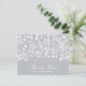 These silver grey flat thank you notes are an excellent value printed on 110 lb paper and feature a white leaf pattern, the words "Thank You" and your name in chic white lettering on the front and your personal message on the back. Perfect thank you notes for your wedding, bridal shower, baby shower, birthday, anniversary, graduation, or any special event. WHITE envelopes are optional. Measures 4.5" x 5.6", but you can choose from 3 paper sizes. MORE COLORS in our collection.
