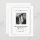 Design features clean and classic black and white design which makes it minimalist and elegant. It features a simple double-line border with round corner details that frame the layout. There is also a photo at the centre that the couple can personalised. The mix of script and serif fonts are like traditional calligraphy, but with a modern twist. A great choice for couples who love minimalist style with a hint of vintage charm.