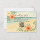This refined RSVP card is the perfect companion to your beachside wedding invitation, carrying forward the romantic coastal aesthetic with vibrant floral accents and serene hues. The front features a clean, customisable layout with sample wording and a placeholder for a QR code, ideal for linking to a personalised RSVP website or guest information hub. Delicate watercolor motifs—such as orange-toned hibiscus frame the design without overwhelming the blank central space, allowing your text and digital details to take centre stage.
