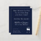 Funny navy blue and white Save the Date card with Who Would Say No To An Open Bar and Free Cake? No One We Know! Add names, city, state and your special date to make sure people are ready to celebrate with you! **PLEASE READ BEFORE PURCHASING** Budget stationery measures 4.5 x 5.6 and fits inside an A6 envelope. It does not come with envelopes, but you can add white envelopes to your order. Each sheet is one item - no cutting is required. The default cardstock is bright white with a semi-gloss finish and 110lbs weight which is suitable for stationery. Please note: if you swich to the satin paper option it is a thinner 80lb paper, which is more like magazine pages than cardstock. Use Live Design Service if you need help with your design after making changes or if the design no longer looks right or is cropped. You can upgrade your order to a larger size, higher quality paper and envelopes by clicking transfer and choosing 5 X 7 flat card or click on our store link Enchanted Finch for other paper options. Your order goes directly to the printers. What you see on the screen is what will be printed and shipped to you. Please triple-check spelling and all details before placing your order to ensure accuracy.