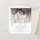 PLEASE NOTE There are two paper options to choose from for this size (4.5 x 5.6”) in the Budget range. For this product, I would highly recommend the semi-gloss which is a 110 gsm card stock, similar in thickness to a postcard. The Satin option is a MUCH THINNER paper 80gsm. The default is set to semi-gloss. THERE IS ONE INVITE PER SHEET. Budget Getting Hitched Script Photo Overlay QR Code Wedding Invitation. Add your QR code to your wedding website on the back so your guests can RSVP and see all the details online without the need for separate enclosures. Informal style. Getting Hitched is in an elegant set script. Easily personalise the rest of the text and replace the sample photo with your own.