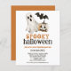 Budget. Ghost Pumpkin Bat Spooky Halloween White. A budget priced smaller 4.5 x 5.6” 110lbs semi gloss similar in thickness to a postcard. There is ONE per sheet. The text with the details can be easily personalised, and you can also change the colour of this text and the background colours on the front and back via the Click to Customise Further option if you so wish.