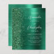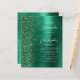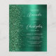 The left-hand edge of this elegant modern wedding invitation features an emerald green faux glitter border. The customisable text combines white handwriting, copperplate and italic fonts on an emerald green faux brushed metal background. The reverse side provides space for wedding details on a green brushed metal background, along with a QR code guests can scan to visit your website and RSVP, which saves the cost of printing and mailing separate RSVP cards.