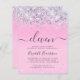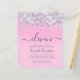 Budget-friendly pretty, glamourous and girly 11th birthday party invitation with sparkly holographic purple, pink and silver faux glitter confetti against a pink background and "eleven" in a soft grey trendy script with swashes.