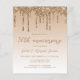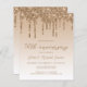 This trendy 50th wedding anniversary party invitation features a sparkly gold faux glitter drip border and ombre background. The words "50th Anniversary" and the names of the couple appear in whimsical gold-coloured script, with the rest of the customisable text in gold-coloured sans serif font. The same gold glitter drip design appears on the reverse side.