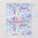 The back of the invitation features a beautiful pattern of mermaid scales in soft pastel colours, accented with shimmering gold, adding a touch of elegance and whimsy to the overall desig