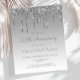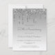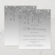 This trendy 25th wedding anniversary party invitation features a sparkly silver faux glitter drip border and silver ombre background. The words "25th Anniversary" and the first names of the couple appear in casual silver gray handwriting script, with the rest of the customizable text in sans serif font. The same silver glitter drip design appears on the reverse side.