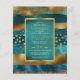 BUDGET Gold and teal brush paint strokes and confetti wedding Invitation. This beautiful design features brush strokes in teal blue and gold and confetti. Your text is in a teal frame with gold border.