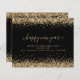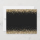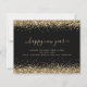 Budget Gold Glitter Black Happy New Year Card. A budget price 4.5” x 5.6” alternative, in a SEMI-GLOSS 110 lb CARD STOCK which is similar in thickness to a postcard. Envelopes are an optional extra and are slightly larger than the card size. Easily personalise the text to your details.