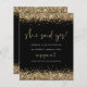 A value for money BUDGET alternative on a smaller size 4.5 x 5.6” semi-gloss 110lbs weight, which is of similar thickness to a postcard (however is not suitable to use as a postcard.). PLEASE NOTE there is ONE per sheet. Gold Glitter Black She Said Yes Engagement Announcement. A little sparkle to let everyone know your exciting news in classic black and gold! Elegant gold faux glitter confetti borders are at the top and bottom and also on the back. She Said Yes and Engagement are set in a modern handwriting style. Easily personalise the rest of the text to your own.