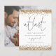 A value for money BUDGET alternative on a smaller size 4.5 x 5.6” semi-gloss 110lbs weight, which is of similar thickness to a postcard (however is not suitable to use as a postcard.). PLEASE NOTE there is ONE per sheet. Gold Glitter Photo At Last Engagement Announcement. A little sparkle to let everyone know your exciting news! Elegant gold faux glitter confetti borders are at the top and bottom. At Last and Engagement are set in an informal modern handwriting style. Easily personalise the rest of the text to your own and replace the photo on the back with your own favourite.